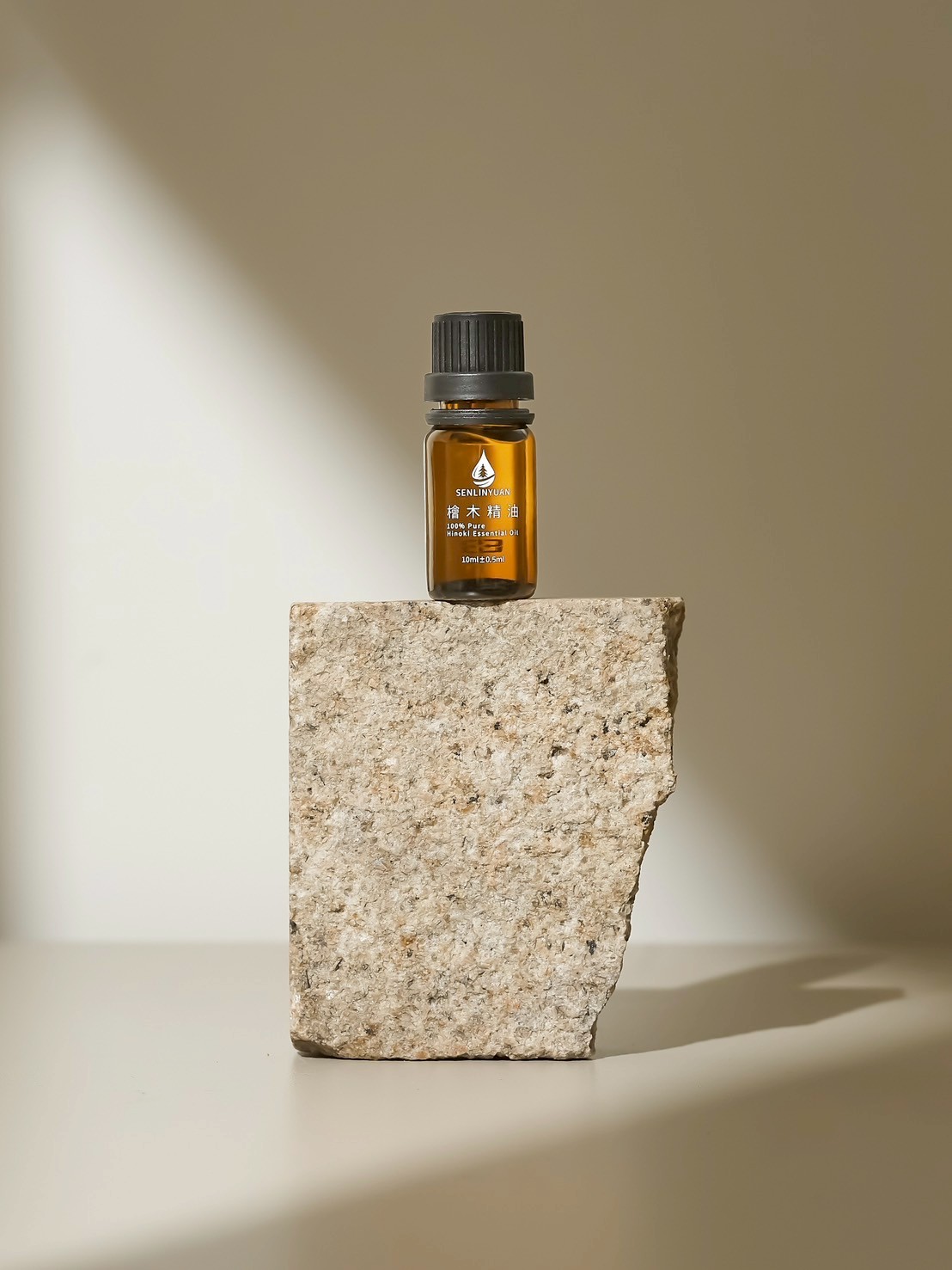 A : 森林苑檜木精,採熱水蒸餾法萃取,不含酒精與人工添加。檜木屬木質類精油,氣味溫潤、性質相對穩定,少量塗抹於手腕、太陽穴等部位時,多數膚質可安心使用。
